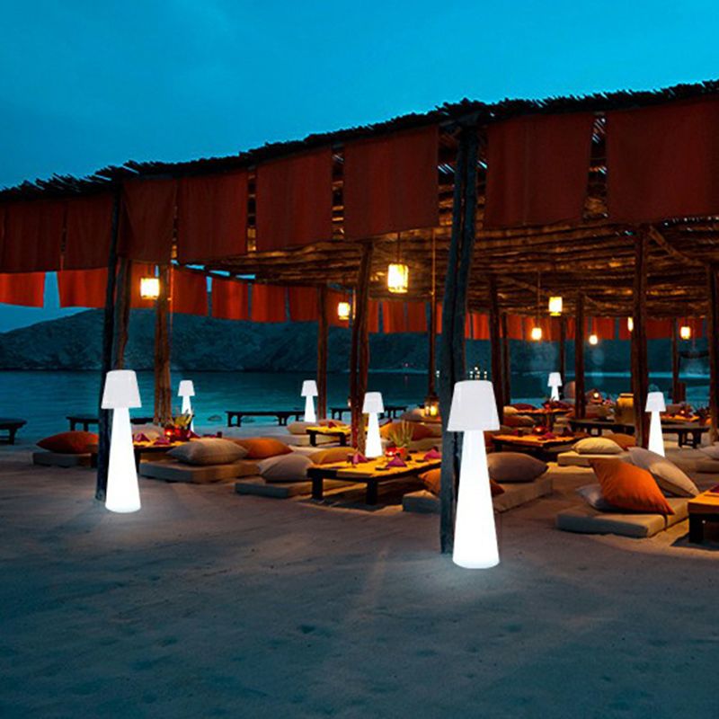 • Featuring a mushroom-shaped design, this outdoor lamp seamlessly blends a vertical conical base with a tapering cylindrical top for a streamlined profile. Its white acrylic body and shade emphasize a clean aesthetic. At the same time, extra-large and large variants reach heights between 120 and 150 centimeters.